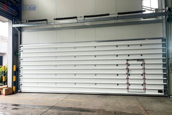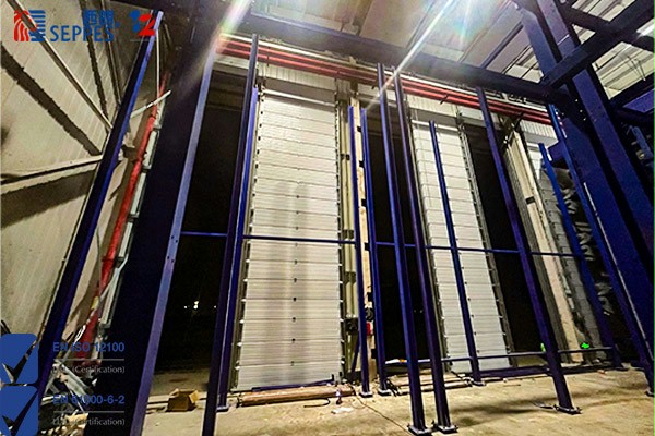 高架输送线定制“瘦瘦高高”工业提升门,保障车间恒温恒湿