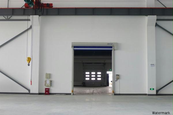 外部安装工业滑升门,可以完成很好的采光效果,并可防盗,外形美观,同时可以抗风和抵御恶劣气候,并配合客户的钢结构厂房外形形成整体的呼应,提升工业厂房的质感与整体档次。内部频繁出入口,选用工业快速门,快速门开关、可频繁开启,底部红外防夹功能,雷达感应自动开门,自动延时关门,人机界面直观显示运行状态,方便快捷,是高品质工业厂房必备的物流装配。