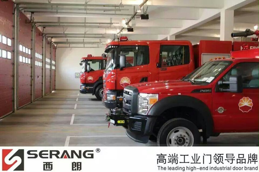 消防车库提升门多为多门联动,与119消防系统联动,当消防系统开启,消防门接收到消防信号后立即自动开启。