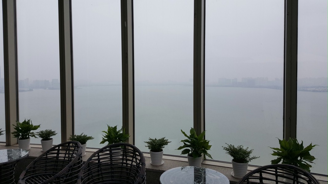 下图为:凯宾斯基大酒顶楼苏州航空俱乐部内景和远眺外景