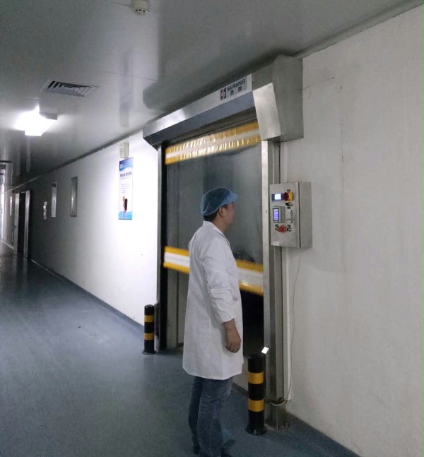合肥某医药车间开始安装不锈钢快速卷帘门,不锈钢快速卷帘门其框架采用一体式304不锈钢材质,耐腐蚀。