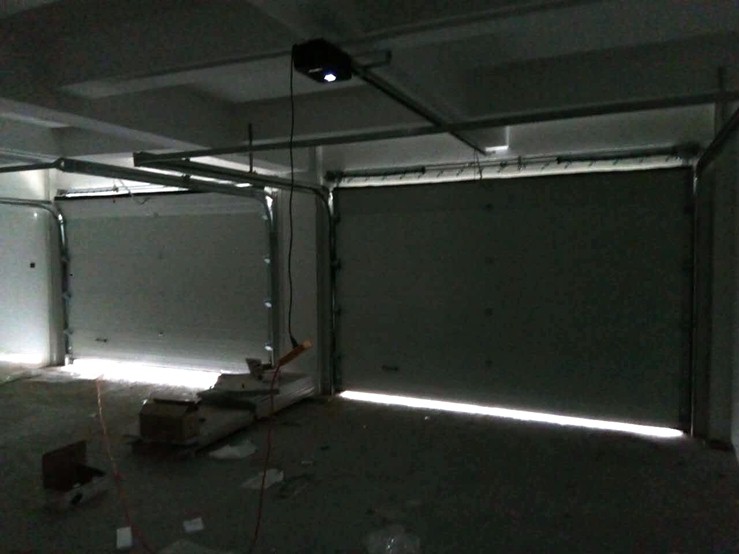 合肥别墅区高档车库门安装施工中,车库门采用欧洲行业标准技术,门板为保温性门板,具有隔温、防盗、抗风防雨功能,运用专业车库门电机驱动,可遥控或蓝牙控制,针对指定车辆自动感应开门,无需人工开启,即可进入车库,智能方便。
