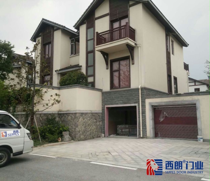 下图为:西朗门业客户家使用了5-6年的别墅车库门照片