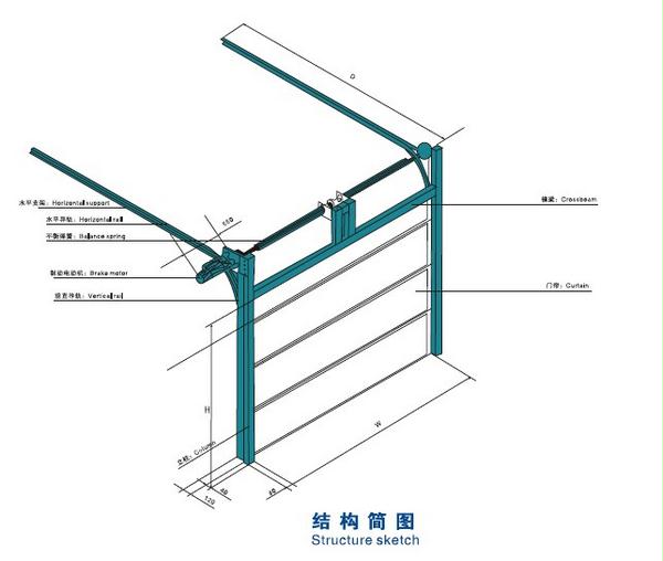 轨道:热镀锌导轨,导轨和门体之间均有密封条,导轨通过支架和加强护板与墙体固定,并可以调整门与墙壁的距离。