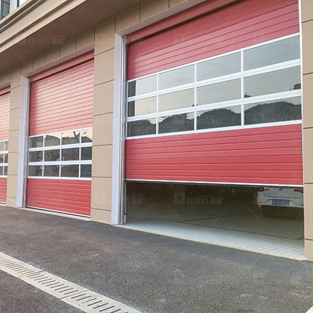 消防车库门,是工业提升门的一种,因门板是定制的消防红色,又被称为红色提升门,消防提升门。