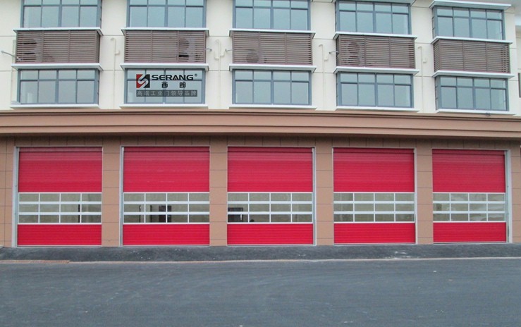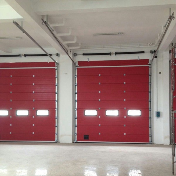 马鞍山消防车库提升门,门板采用消防红色,可单面红或双面红色,根据需求开设小窗或小门,与119消防系统联动控制,一键开启,快速门启闭,真正实现应急联动的作用。