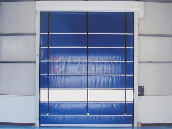 西朗门业生产的背带式快速堆积门,采用折叠式提升方式和多条内置式横向抗风杠杆,其风压可以均布于门帘整体,其抗风性能远高于普通滚筒式快速卷门,特别适合于物流通道,和大面积的洞口。插入式门帘更容易拆卸,维护更加方便。