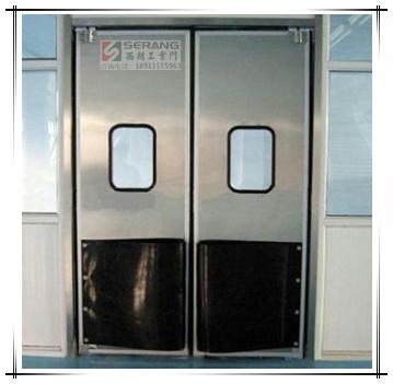 自由门门体采用高性能的保温材料,具有保温、隔音、使用寿命长、环保的特点,门板表面为ABS板,多种颜色可以选择,具有良好的耐冲击性。门体厚度为40mm。门体四边安装有特殊设计的铝合金型材,能降低门体四周的磨损,也可以加装密封条,较好地防止室内能量的流失。可视窗口为符合安全标准的双层有机玻璃制成。